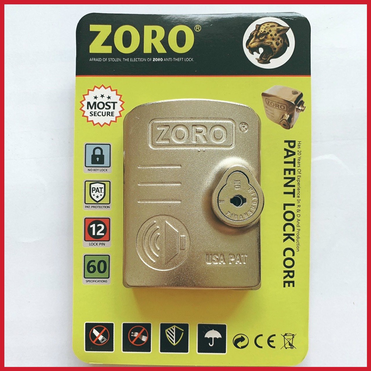 – Ổ khóa báo động chống trộm cao cấp ZORO được thiết kế đặc biệt với cảm biến rung Dual Shock sẽ là người bảo vệ tin cậy của mọi nhà.